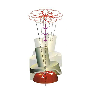 鉚頭按11瓣梅花軌跡運(yùn)動(dòng),使鉚釘材料產(chǎn)生力變形后達(dá)到一次性成型鉚接。徑向鉚接適用于高精度鉚接要求的產(chǎn)品零部件,特別對(duì)于不銹鋼圓棒材料的鉚接效果更是非常理想且表面光潔度可以達(dá)到Ra1.6。